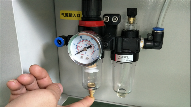 空氣過(guò)濾器會(huì )積有水或者固體雜質(zhì),需要定期清理。按下過(guò)濾器底部的金屬部分水會(huì )自動(dòng)排除,或者擰下清理濾芯上的雜質(zhì)。1-2所示